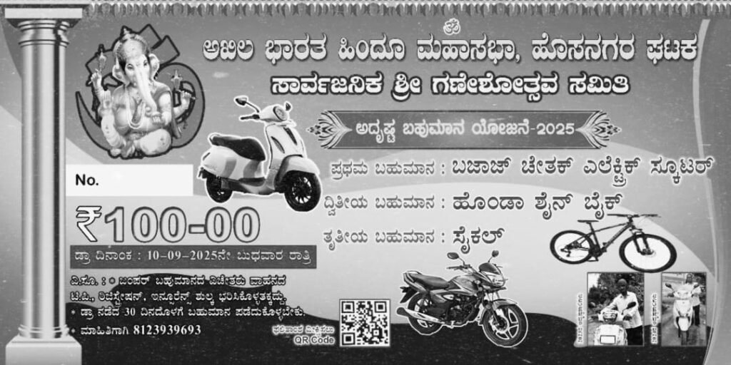 ಸಾರ್ವಜನಿಕ ಗಣೇಶೋತ್ಸವ ಸಮಿತಿ ಅದೃಷ್ಟ ಬಹುಮಾನ ಯೋಜನೆ – 2025